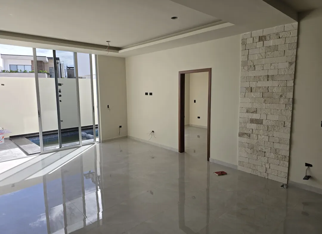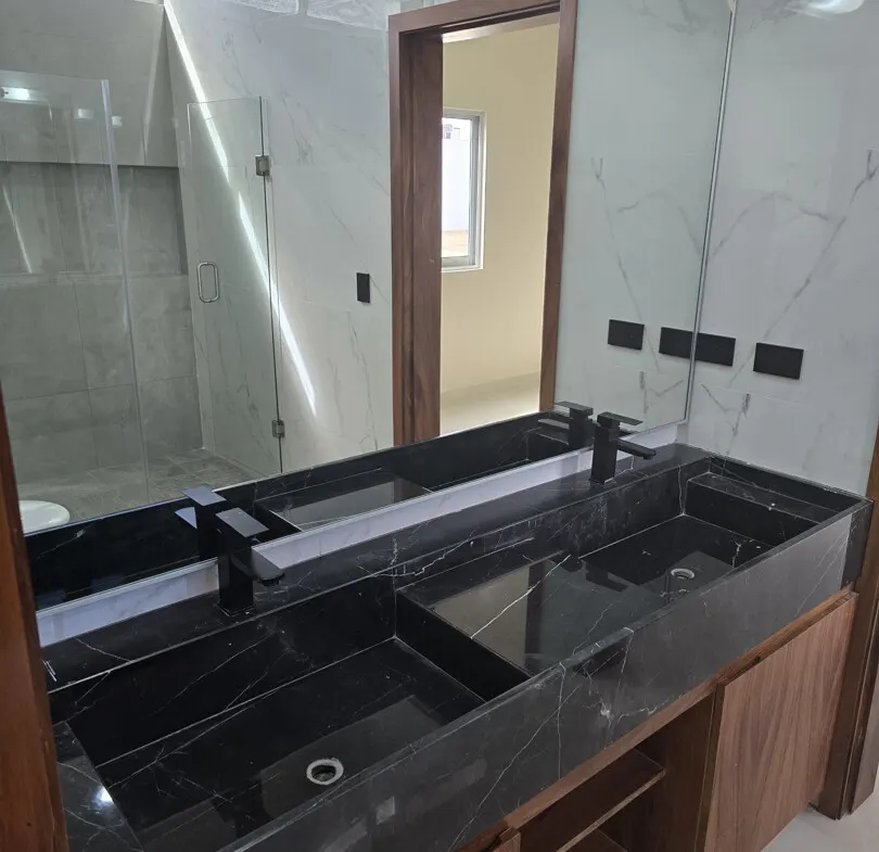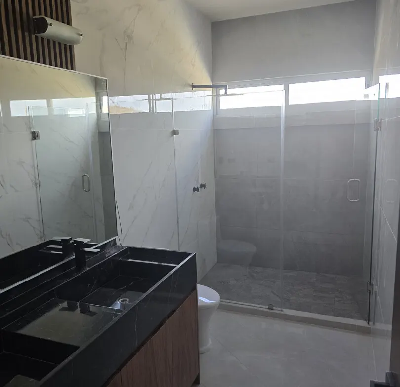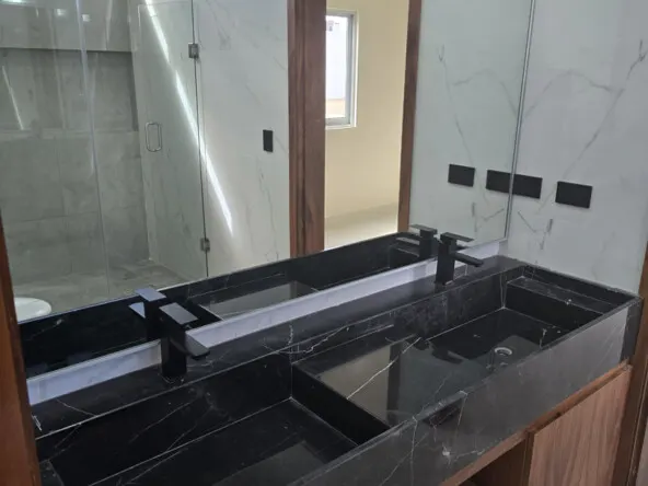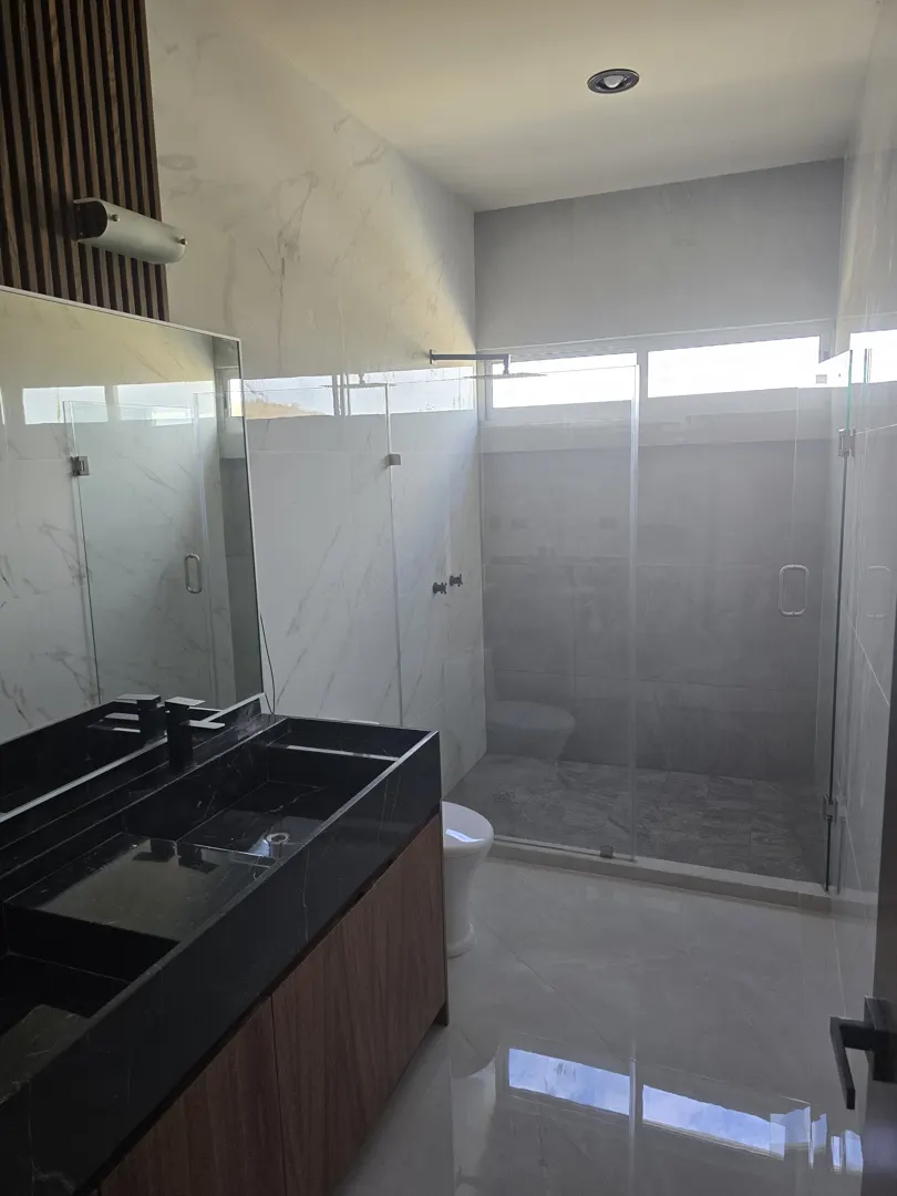 - 🚿Baños: 3 completos (lavabos dobles de mármol y cancel de vidrio templado de 10 mm).