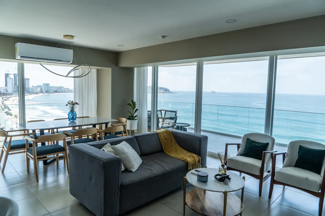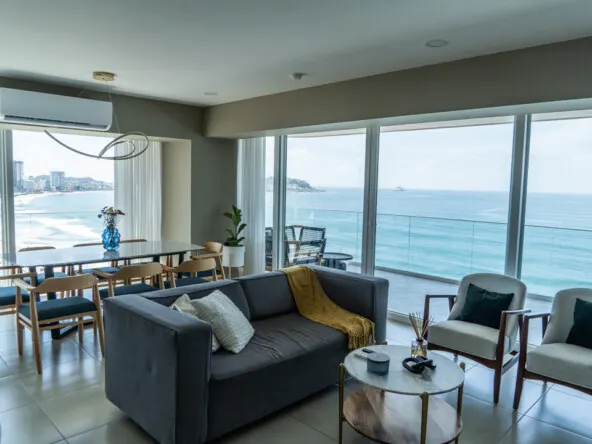 Ubicado en una de las zonas más solicitadas como lo es el Malecón de Mazatlán, este impresionante espacio se distingue por sus amplias áreas de convivencia, ideales para disfrutar momentos inolvidables con familiares y amigos. La sala, bañada en luz natural, ofrece un ambiente acogedor y elegante perfecto para relajarse o recibir invitados.