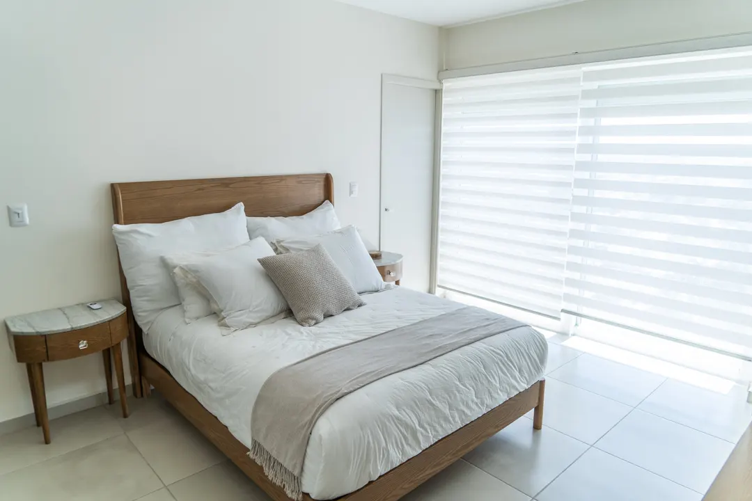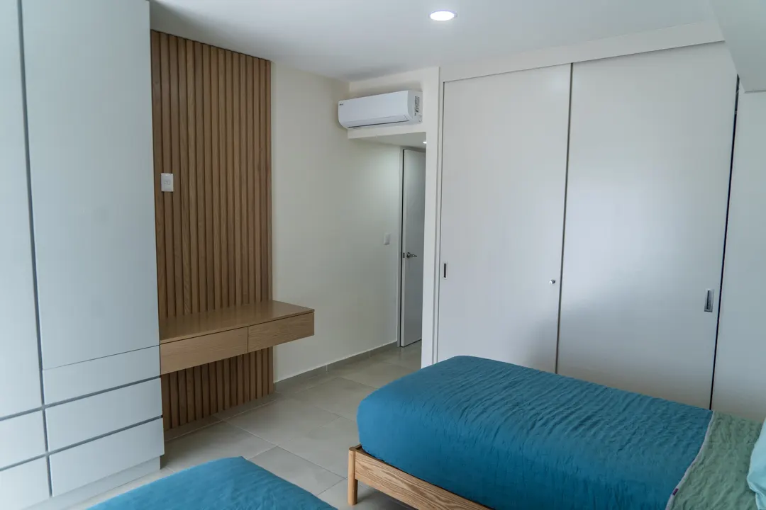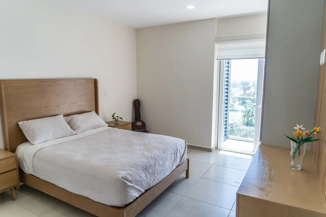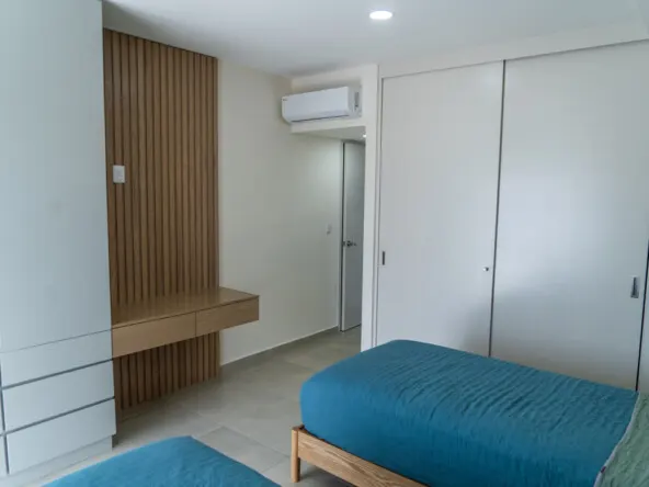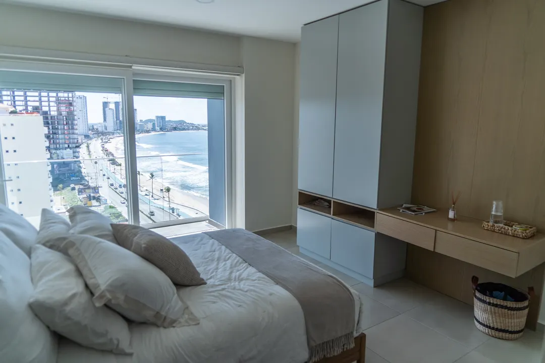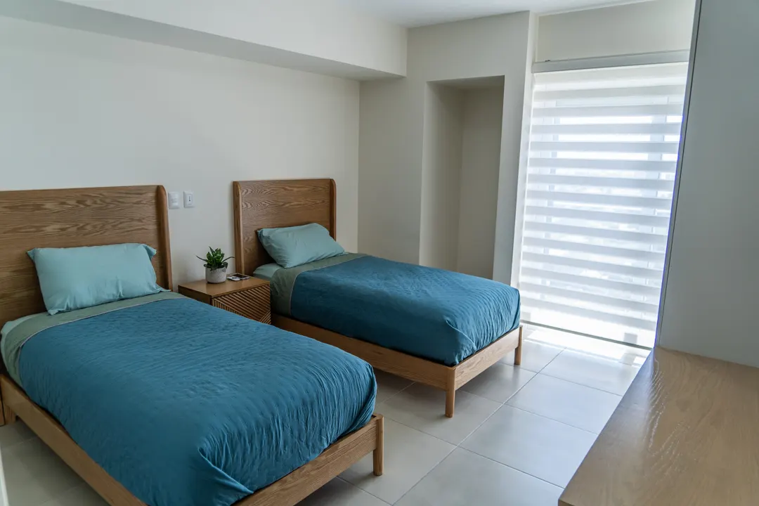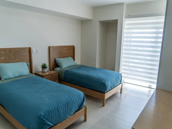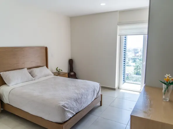 Cada habitación ha sido diseñada para ofrecer privacidad y confort, con closets empotrados y grandes ventanales que proporcionan vistas espectaculares. Los baños, modernos y lujosos, están equipados con detalles de alta calidad, creando un oasis de relajación.