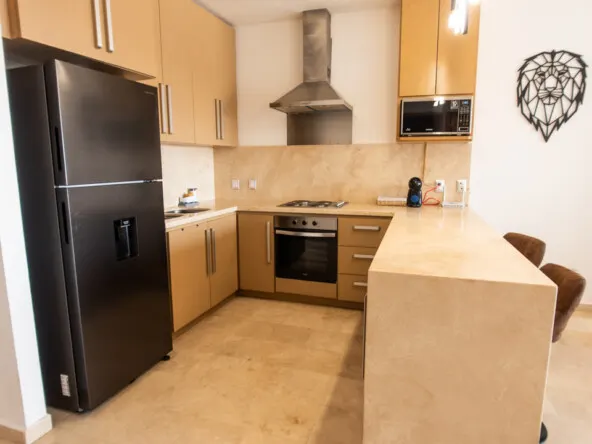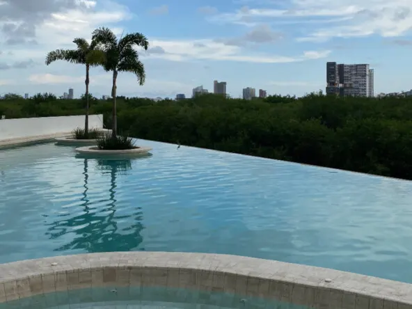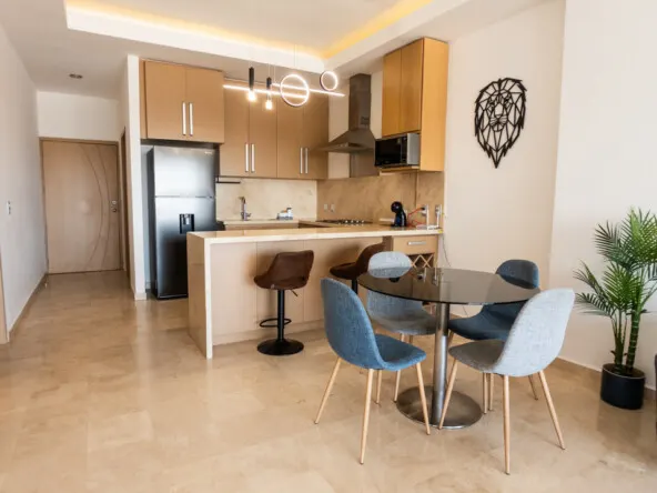 Vive el lujo y la comodidad en este moderno departamento amueblado ubicado en el exclusivo complejo Marina Platino Plus, en el tercer piso, con impresionantes vistas y acceso a amenidades de primer nivel.