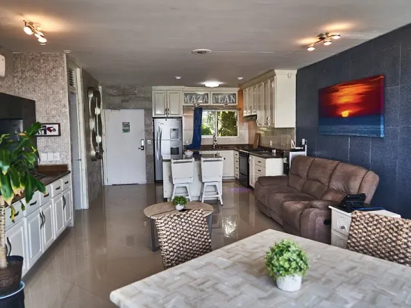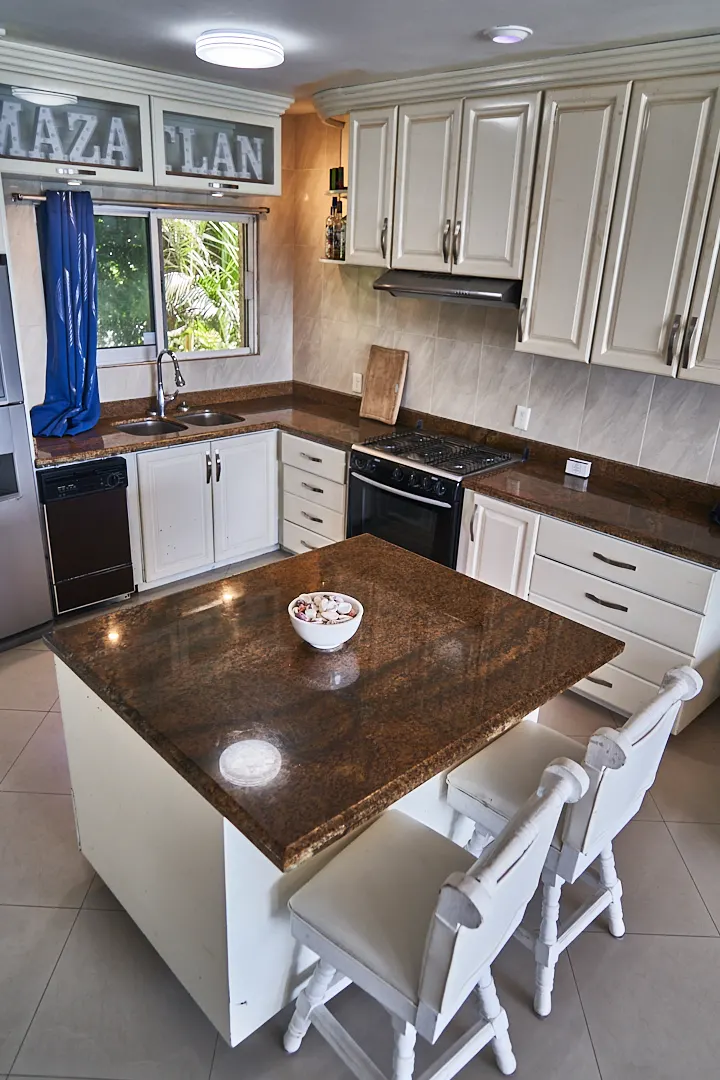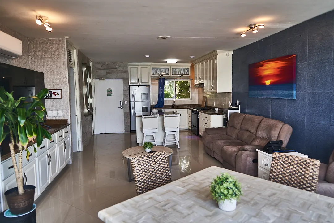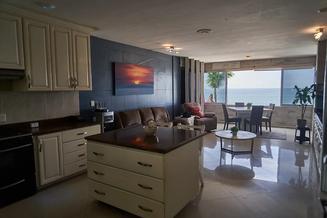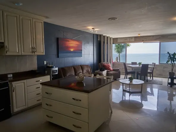 Este departamento en venta se encuentra recién remodelado, se vende amueblado. Cuenta con una recámara, pero eso no lo hace un departamento pequeño co sus 82 m2. La cocina es de dos partes y además contiene una isla en el medio con barra de granito, y lo que lo hace especial es que desde la cocina podrás disfrutar la hermosa vista al mar que tiene.