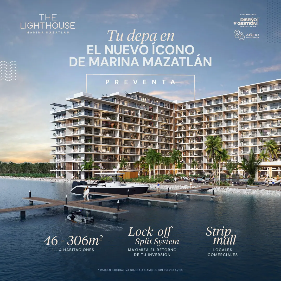 ¡Descubre The Lighthouse, el nuevo ícono de la Marina Mazatlán! Este exclusivo desarrollo ofrece departamentos en venta con impresionantes vistas al mar, diseño moderno y amenidades de primer nivel.