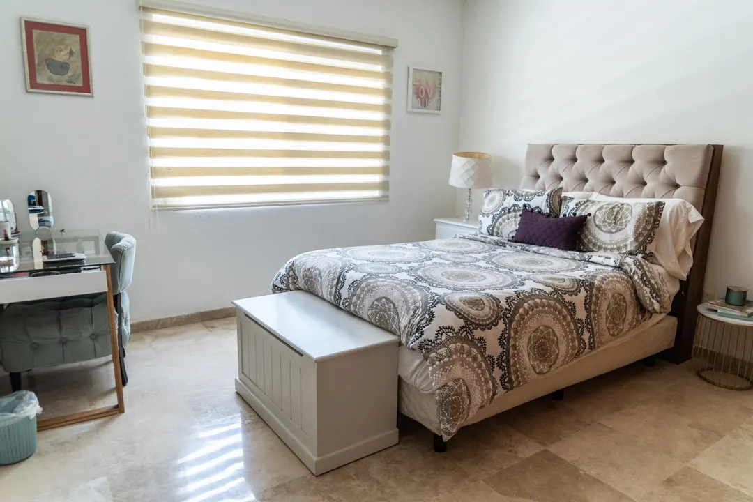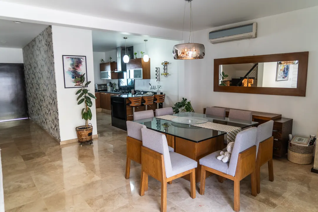 Al entrar te recibirán acogedores espacios, con una luminosidad natural que realza cada rincón. La sala, elegantemente decorada se conecta con un comedor espacioso perfecto para cenas familiares o reuniones. La cocina, completamente equipada con modernos electrodomésticos y un diseño funcional hará que cocinar sea un placer. Las habitaciones son verdaderos refugios, cada una con su propio estilo y mucho espacio para el descanso. El dormitorio principal cuenta con un baño en suite y un walking closet, mientras que las habitaciones secundarias son igualmente acogedoras y luminosas.