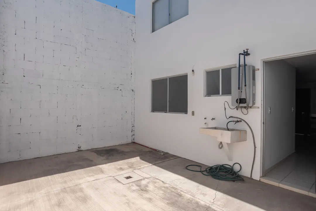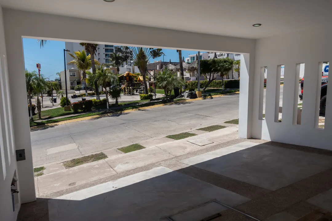 Al fondo, un patio versátil ofrece un espacio privado que puedes adaptar como un acogedor jardín, un área de juegos para los niños o un espacio para tus reuniones al aire libre. Finalmente, la cochera techada protege tu vehículo del sol y la lluvia, un detalle de confort que se agradece en el clima de Mazatlán.