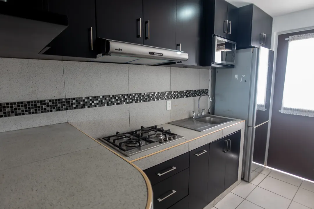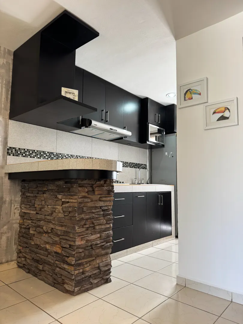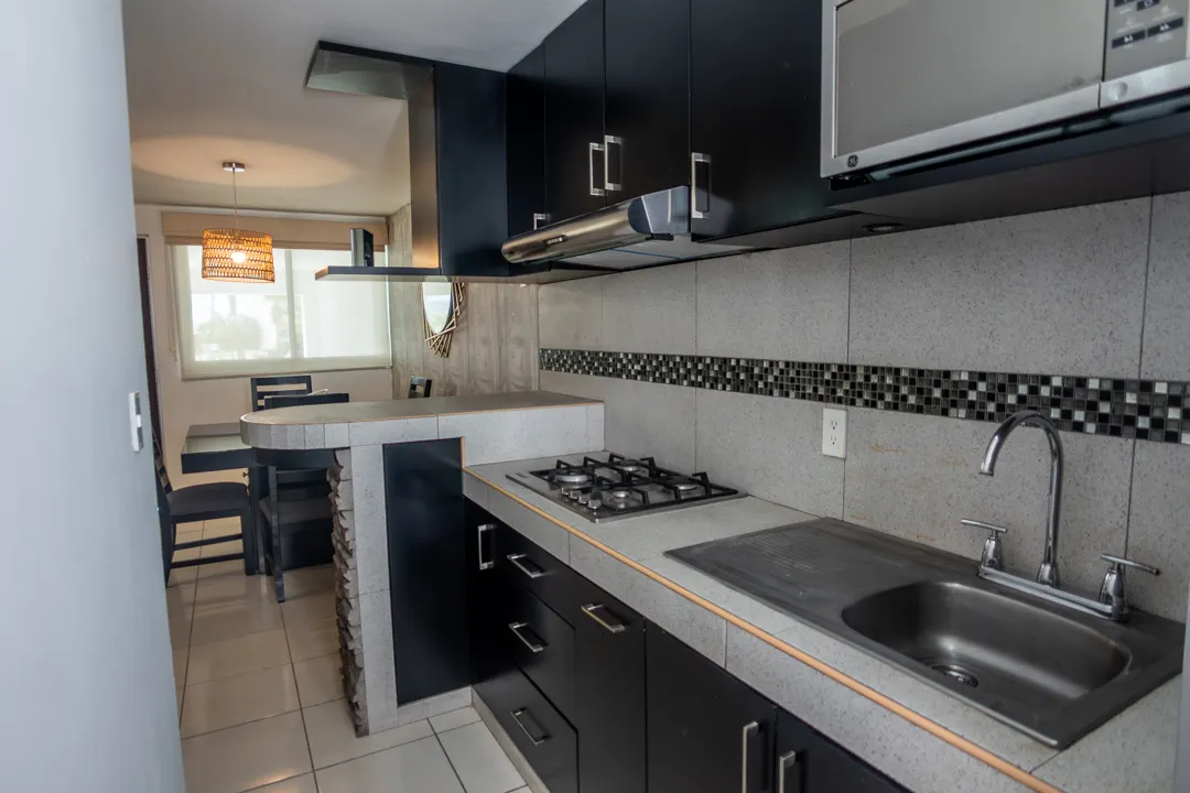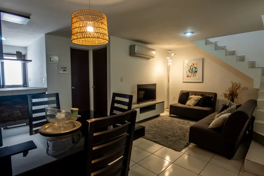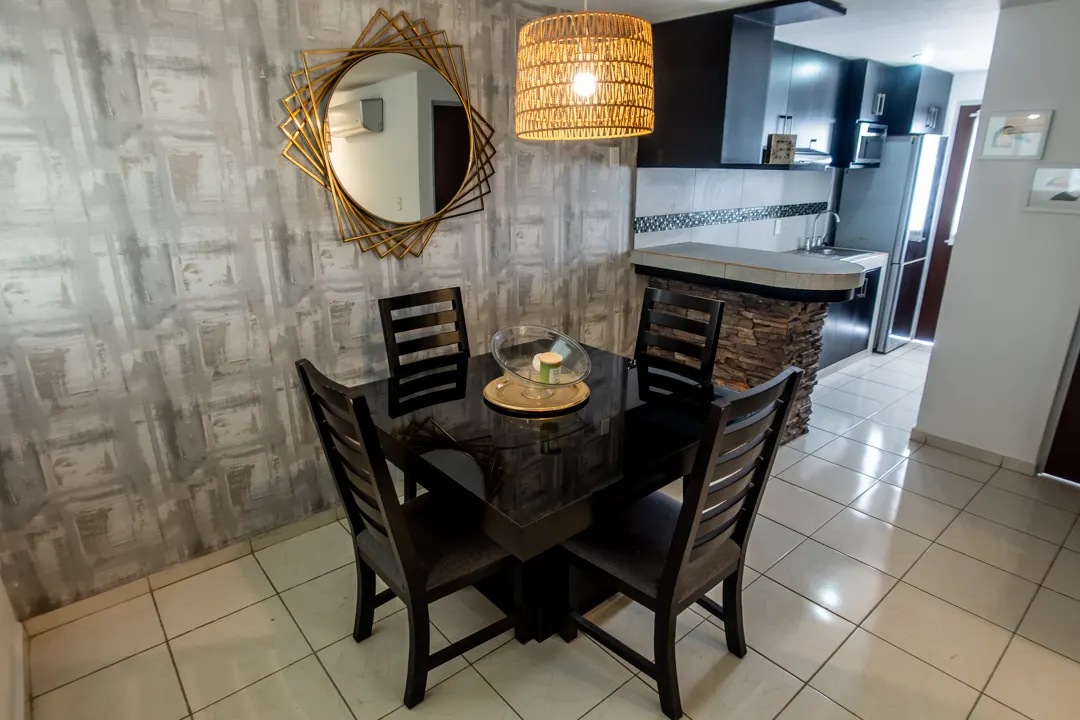 La sala y el comedor fluyen en un espacio luminoso y abierto, conectándose armoniosamente y creando el corazón social del hogar, ideal para recibir visitas. La cocina integral con barra es moderna y funcional, perfecta para preparar deliciosas comidas mientras convives con la familia o para disfrutar de desayunos rápidos.