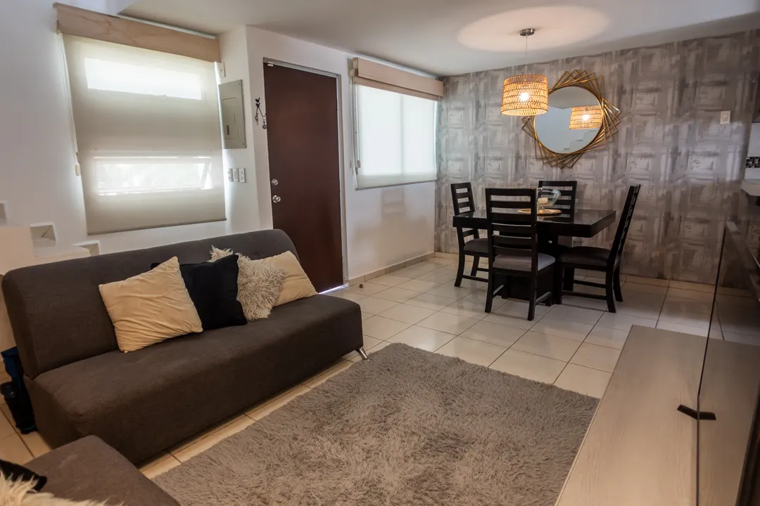Una de las características más buscadas de esta propiedad es que cuenta con una recámara completa en la planta baja. Esta habitación es ideal para visitas, para personas mayores que prefieren no usar escaleras, o incluso puede adaptarse perfectamente como una oficina en casa.