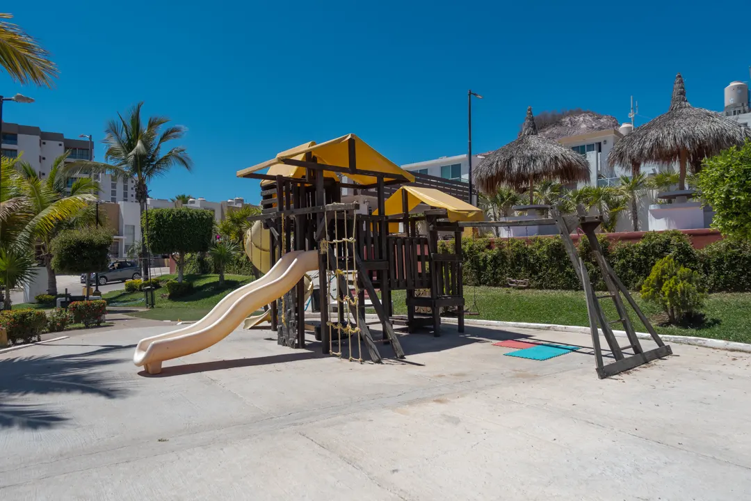 - Acceso Inmediato: Olvídate de caminar largas distancias cargando toallas o juguetes. La alberca y los juegos infantiles están literalmente cruzando la calle.