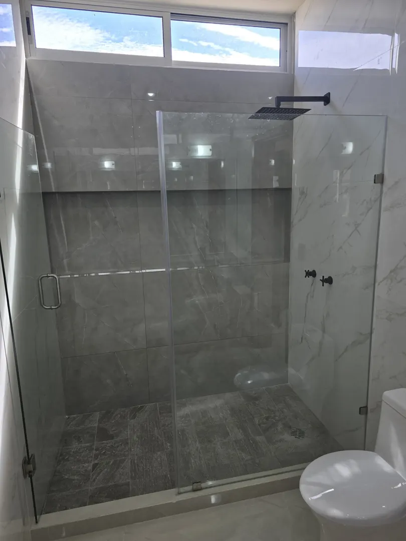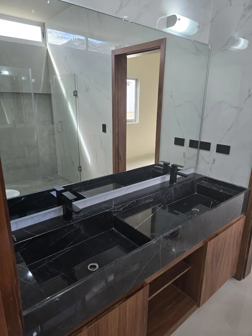 - 🚿Baños: 3 completos (lavabos dobles de mármol y cancel de vidrio templado de 10 mm).