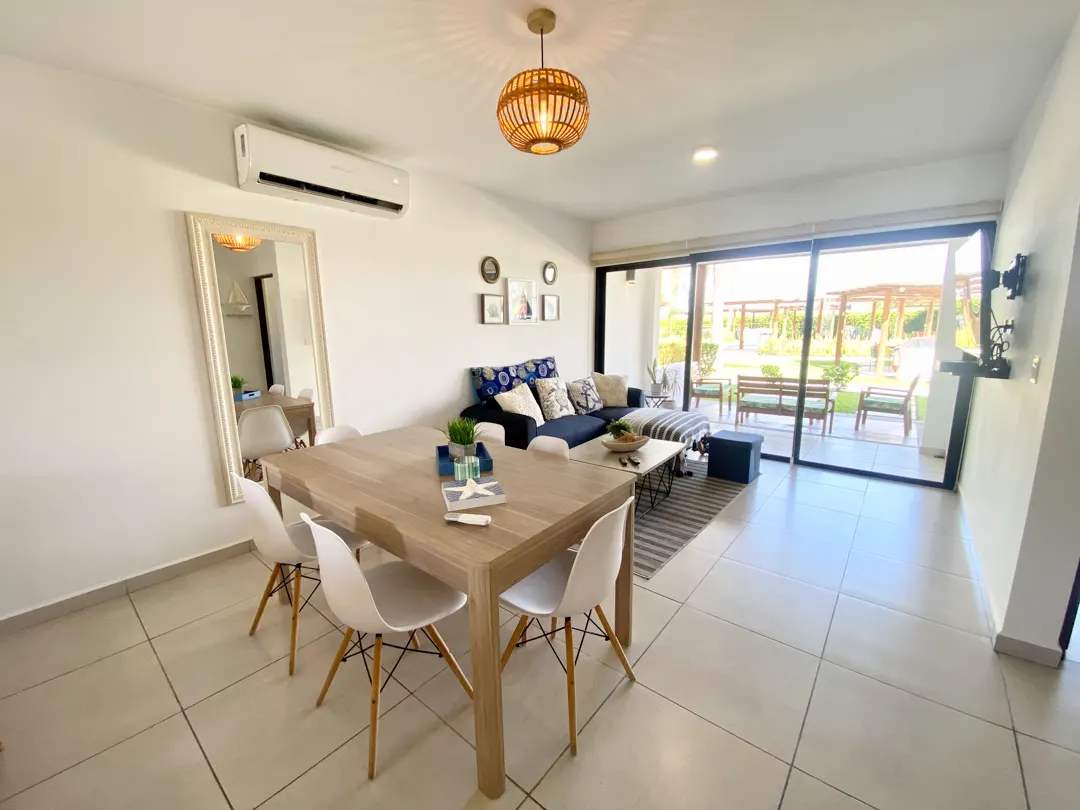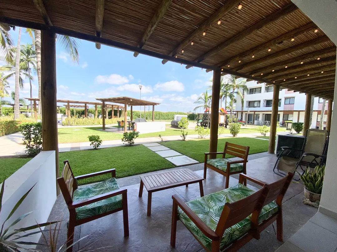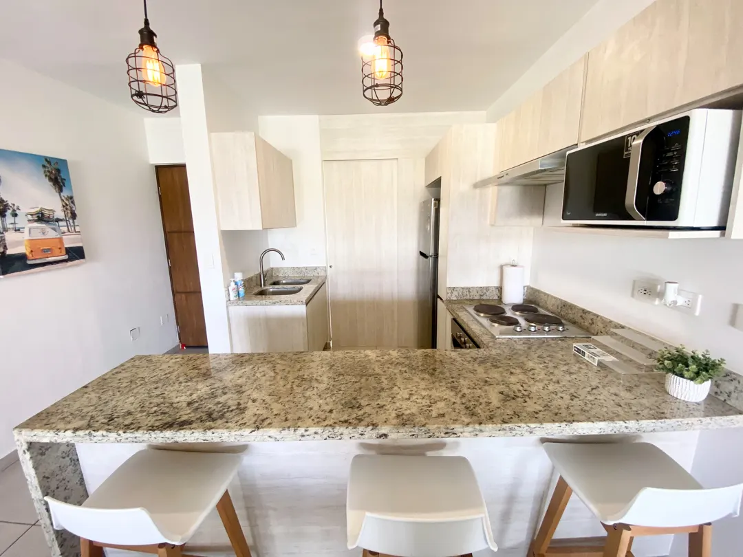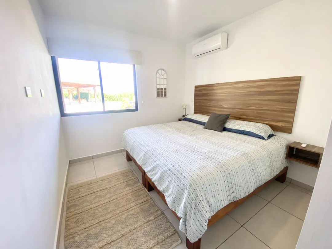 Ubicado en un nivel de fácil acceso, su distribución inteligente conecta de manera fluida la sala, el comedor y una moderna cocina equipada. Desde su terraza privada, podrás disfrutar de vistas espectaculares hacia la alberca, el lugar perfecto para tu café matutino o una copa de vino al atardecer. La propiedad está lista para habitarse, permitiéndote una mudanza fácil y sin complicaciones.