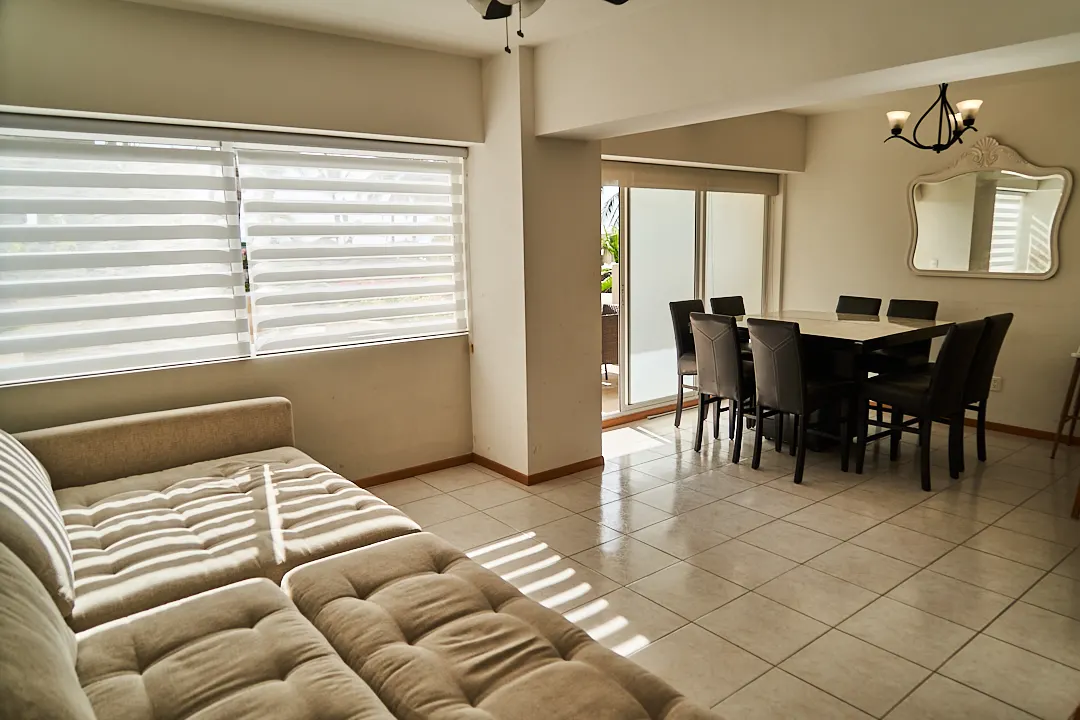 Es un departamento amplio de 99 m2, se vende completamente amueblado y equipado como se puede apreciar en las fotografías. Es una recámara amplia con closet y baño completo, por fuera está la sala, comedor y cocina equipada junto con medio baño para visitas. Cuenta con una terraza amplia, esta ubicado en planta baja en donde tiene acceso a el area de amenidades como son la alberca, camastros y el acceso a la playa.