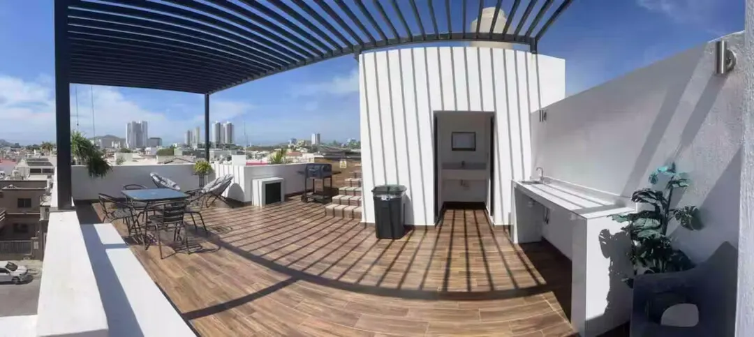 Vida Social y Vistas: El edificio cuenta con un Roof Garden de uso común, equipado con asador y área de estar. Es la joya de la corona para el entretenimiento, ideal para organizar carnes asadas con amigos o disfrutar de los espectaculares atardeceres mazatlecos.